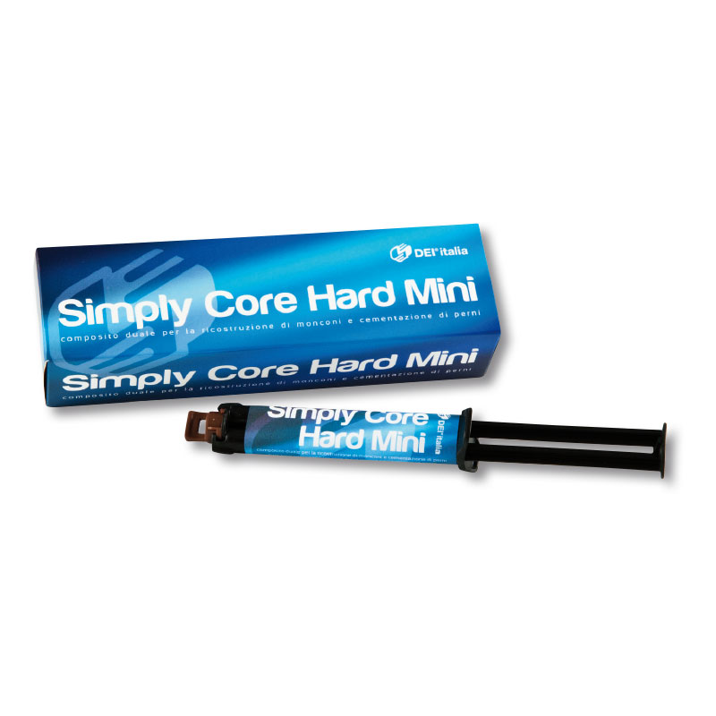 DEI® Simply Core Hard e DEI® Simply Core Self C son dos compuestos para la cementación de pernos y la reconstrucción de muñones con cualidades adhesivas especiales y resistencia a las cargas y a la flexión. Son altamente radiopacos y no se calientan durante la fase de polimerización. Son muy prácticos gracias a la mezcla directa y permiten al dentista elegir el tipo de polimerización preferida: dual para el tipo HARD, auto para el tipo SELF.